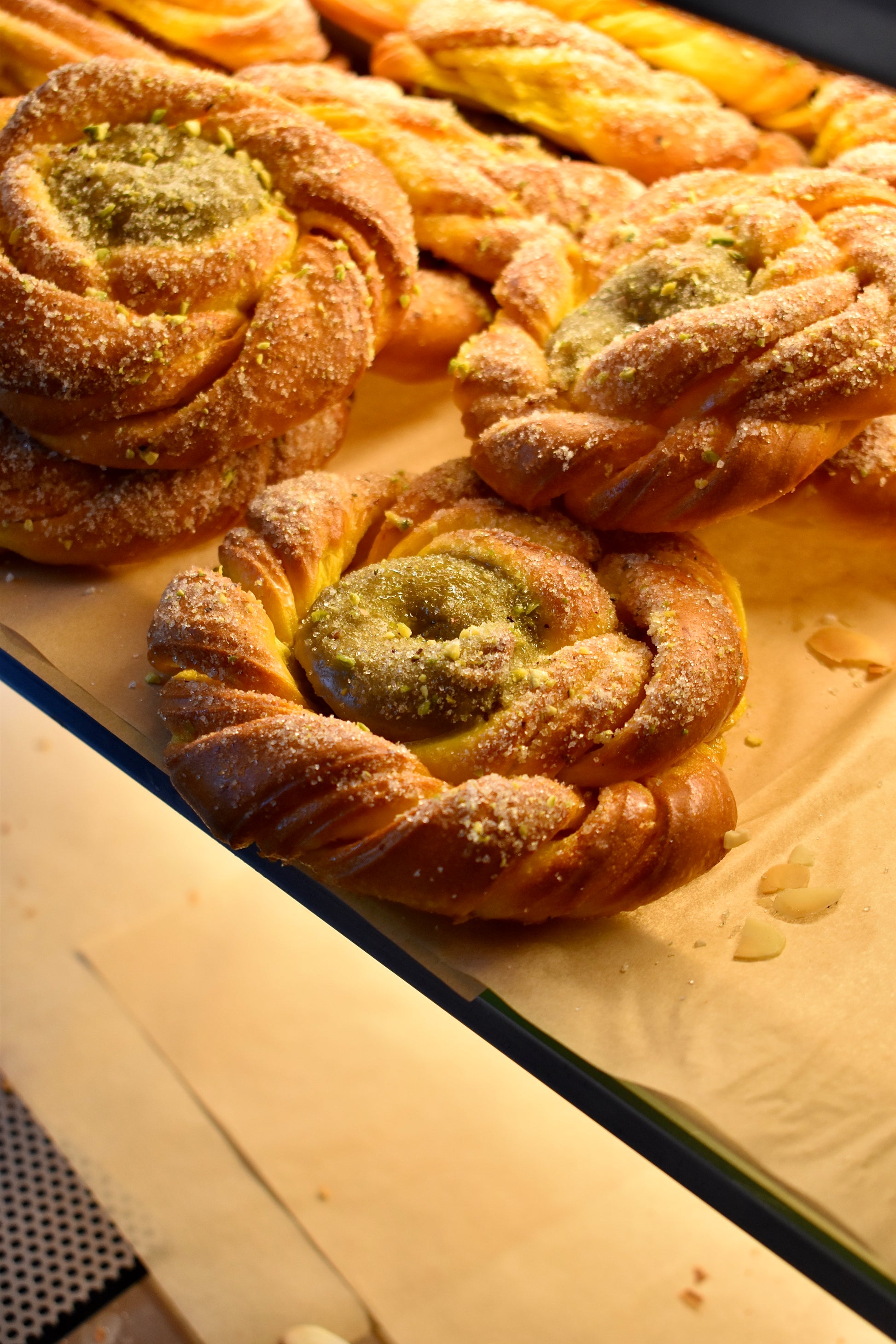 Bakad med smör, mjölk, ägg pistage & saffran.